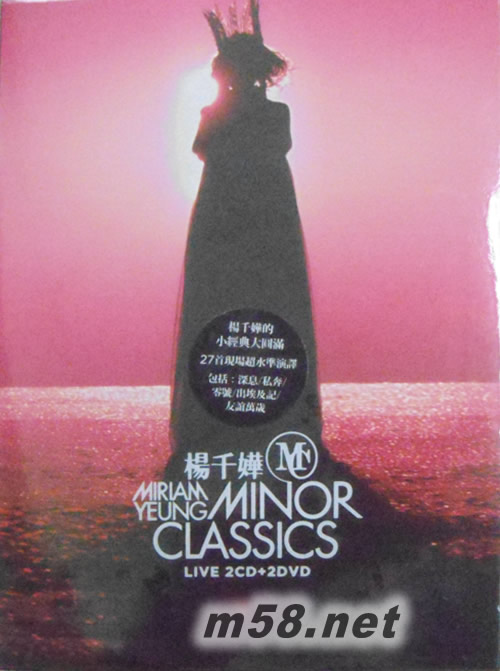 Minor Classics Live 2CD+2DVD(首批限量版)(m58.net) 楊千嬅 Minor Classics live ( 2 Live DVD + 2 Live CD ) 楊千嬅的小經典大世界 超過2小時27首現場超水準演譯 一同見證少女的成長 DVD – DVD-9 / HD全高清1920 x 1080拍攝 / 隱藏式繁體中文字幕 首批限量2 DVD + 2 CD發行 數量有限 售完即止
