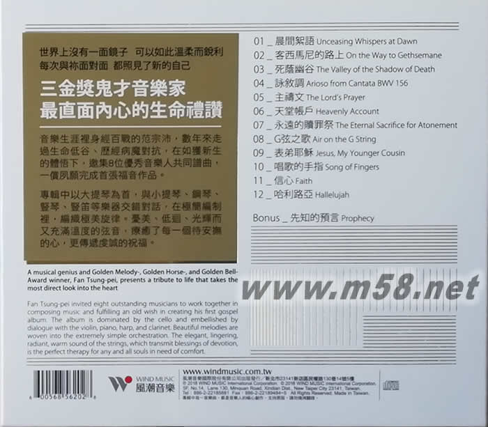 專輯中以大提琴為首,與小提琴、鋼琴、豎琴、豎笛等樂器交錯對話,在極簡編制里,編織極美旋律。憂美、低迴、光輝而又充滿溫度的弦音,療癒了每一個待安撫的心,更傳遞虔誠的祝福。