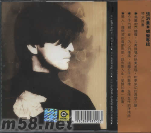 蛻變(m58.net) 繼[你知道我在等你嗎]、[心愛妹妹的眼睛]之后,最新個人專輯。 遠赴英國倫敦錄音 十首歌曲精彩絕倫 曲風兼融古典深情、激越狂放、浪漫雋永 十足展現(xiàn)張洪量驚世傲人才華 絕對值得珍藏