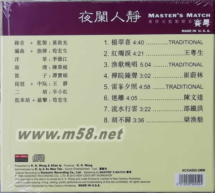 01. 楊翠喜 -Traditional 02. 紅燭淚 -王粵生 03. 漁歌晚唱 -Traditional 04. 禪院鐘聲 -崔蔚林 05. 雷峰夕照 -Traditional 06. 迷離 -陳文達(dá) 07. 流水行云 -郡鐵洪 08. 胡不歸 -梁漁舫