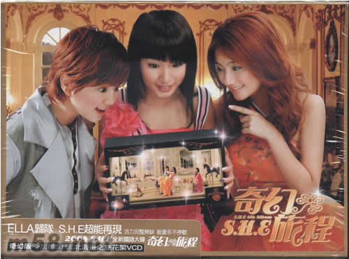 贈送預購贈品超精美奇幻S.H.E肖像年歷卓墊(38*28CM) 兩款桌墊隨機贈送一款。 2004 年 S.H.E 全新國語大碟!ELLA 歸隊,S.H.E超能再現,活力完整無缺,能量永不停歇! 奇幻版加贈S.H.E北海道之旅花絮VCD 九首全新創作再加一首西洋老歌創意改編。 S.H.E 歡樂領團,邀你一同穿梭愛情、夢想與時空展開青春的奇幻旅程。