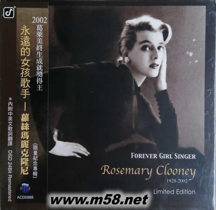 永遠(yuǎn)的女孩歌手FOREVER GIRL SINGER (限量紀(jì)念版)(m58.net) 「蘿絲瑪麗才華洋溢,所唱的每首歌皆能散發(fā)出熱情和感情,她是現(xiàn)代美國(guó)音樂的代表人物之一」~法蘭克辛那屈 「她能將經(jīng)典老歌演唱的不落俗套,總是能有許多新意」~東尼班尼頓 「她似乎曾經(jīng)歷過每一首歌所表現(xiàn)的情境。從她的歌聲中,我學(xué)到情緒的表現(xiàn)方式」~黛安娜克瑞兒 本專輯收錄蘿絲瑪莉以成熟的歷練詮釋「甜蜜的肯德基老家」;「丹尼男孩」則唱出了無盡的孤寂,其它的曲名包括保羅賽門經(jīng)典情歌「多年后,依然為你瘋狂」;蘿絲瑪莉膾炙人口的代表作「義大利曼波」、及「白色耶誕」。 超過50年,「女孩歌手」蘿絲瑪麗唱過無數(shù)成名曲,她的每一分鐘,幾乎與樂迷們息息相關(guān),全世界的樂迷也將她視為一位老朋友,一起與她的音樂起伏。 2002年6月29日去世於常住50年的比佛利山莊,享年74歲。當(dāng)時(shí)丈夫及5個(gè)孩子、10個(gè)孫子都在身旁。7月5日在近700位家人及樂迷的陪伴下,下葬於她最鐘愛的家鄉(xiāng),肯德基州梅斯威爾市。