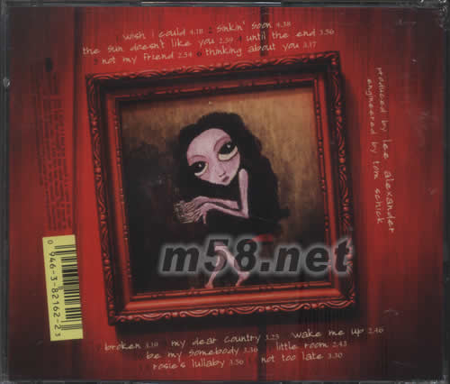 1.WISH I COULD 2.SINKIN SOON 3.THE SUN DOESN'T LIKE YOU 4.UNTIL THE END 5.NOT MY FRIEND 6.THINKING ABOUT 7.BROKEN 8.MY DEAR COUNTRY 9.WAKE ME UP 10.BE MY SOMEBODY 11.LITTLE TOOM 12.ROSIE'S LULLABY 13.NOT TOO LATE