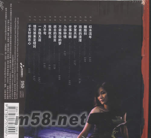 夢里共醉(m58.net) 感性流麗 渾厚、亮麗、脫俗、天籟中的極品,不帶脂粉的現代女性魅力,本碟記錄了13首經典廣東歌曲佳作,在這我們可以一嘗浪漫派的余韻芬芳,似水流年。肖瀟以其近十七年的演唱功力,傾心演唱出這絕佳作品,那溫溫柔柔的歌聲滲出濃濃情意,重溫那往日舊夢,出色的人聲,吉他及牛筋,聽得發燒友如癡如醉,此碟編曲配樂的確值得一贊。