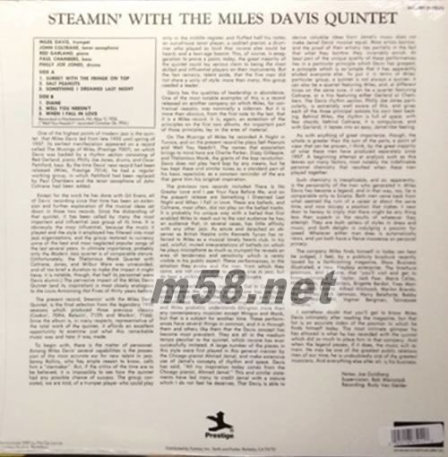 STEAMIN WITH THE MILES DAVIS QUINTET (爵士四重奏 小號(hào)、薩克斯、鋼琴、貝斯) 黑膠專輯背面圖片