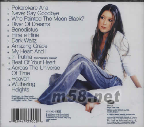 Hayley Westenra Pure (特別版)專輯背面圖片