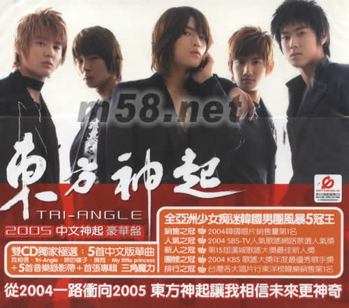 價(jià)格為估,以實(shí)到貨為準(zhǔn)! 東方神起 TRI ANGLE(m58.net) 亞洲超人氣魅力男孩團(tuán)體[東方神起],這股東方風(fēng)暴一路從2004后延燒到2005年,出道不過一年,單曲、專輯的銷售成績(jī)已創(chuàng)下八十萬張的驚人紀(jì)錄,不停奔波於韓、日中三地宣傳的他們,各大小獎(jiǎng)項(xiàng)更是拿個(gè)不停,新人獎(jiǎng)、人氣獎(jiǎng)、歌謠……等等,相信這5個(gè)年紀(jì)輕輕的大男孩將引領(lǐng)韓流炫風(fēng)再創(chuàng)高峰。 從靦腆清澀愛意的[HUG 擁抱]到略顯成熟魅力的[THE WAY UARE 你的樣子],東方神起希望每次都能給大家不同的感受:主打單曲[我相信]鋼琴與弦樂合嗚的R&B抒情巨構(gòu),坦露東方神起最私密真實(shí)的少男情愛心事;專輯同名單曲[TRI-ANGLE]共收錄兩種版本,采用莫札特第40號(hào)交響曲第一樂章做為道入,HIP ROCK風(fēng)格以強(qiáng)強(qiáng)撼搖滾吉他搭著嘻哈節(jié)拍,并不時(shí)穿插弦樂式古典音樂視底,別出心裁 ,歌詞中反應(yīng)社會(huì)新聞中常出現(xiàn)的被害者、加害人及旁觀者將之比喻為TRANGLE三角關(guān)系,但大部分的人們最后都選擇冷眼旁觀,結(jié)果很可能會(huì)招致同樣的下場(chǎng)。 行程滿當(dāng)?shù)臇|方神起特地抽空進(jìn)錄音室錄制了5首中文歌曲收錄在亞洲特別版專輯中獻(xiàn)給亞洲地區(qū)的歌迷們,另外還多加贈(zèng)了5支精采M/V一并收錄在其中,絕對(duì)起值的特別版專輯,一份新年最好的禮物,你,還在等什么?