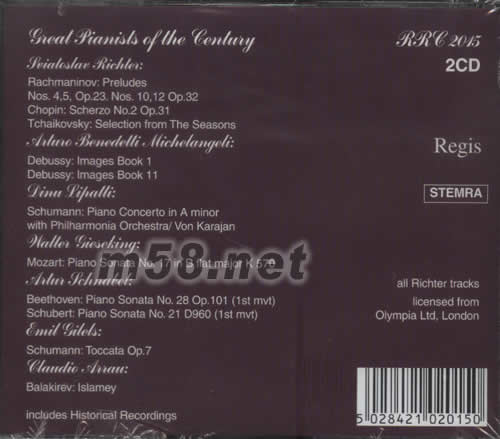 GREAT PIANISTS OF THE CENTURY世紀偉大鋼琴家專輯背面圖片