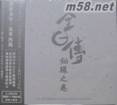 全日傳 鉑環之卷 SACD限量版(m58.net) 完全限量版單層 SACD 1 + 1 DSD CD 風雨同路30年 伴您同行真經典 昔日中文金曲的日文原唱 濳伏多年 光華再現 採用日本DSD數碼編製,原裝母帶技術重新處理, 邁向發燒靚聲天碟新紀元 (單層SACD只可在SACD機上播放,DSD CD可在任可CD機播放