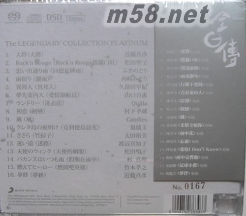 Sony Music徇眾要求重新推出2款經典作品全日傳-鉑環之卷完全限量版單層SACD 1 + 1 DSDCD風雨同路30年伴您同行真經典昔日中文金曲的日文原唱濳伏多年光華再現採用日本DSD數碼編製,原裝母帶技術重新處理,邁向發燒靚聲天碟新紀元(單層SACD只可在SACD機上播放,DSD CD可在任可CD機播放)全部原裝日本壓碟!
