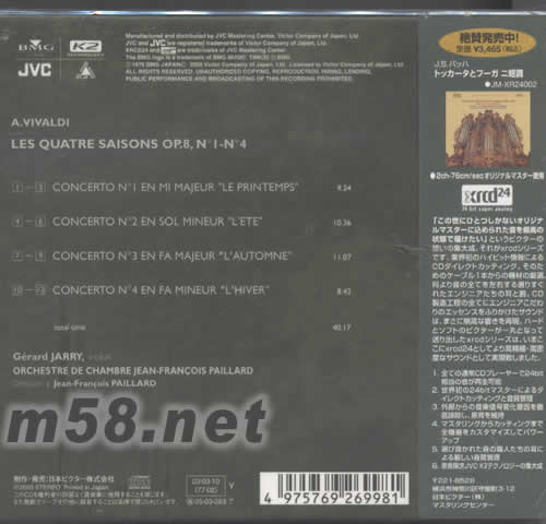 LES QUATRE SAISONS OP 8 N 1-N 4日本版XRCD(m58.net) 請點看產品正、背面大圖 日本版XRCD古典發燒系列共有十數個產品