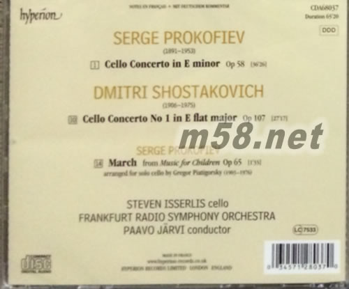 普羅高菲夫 / 肖斯塔科維奇: 兩首大提琴協奏曲 進行曲( 改編獨奏版) Prokofiev & Shostakovich: Cello Concertos 大提琴(m58.net) 史帝芬-伊瑟利斯(Steven Isserlis)大提琴 Paavo JARVI指揮 法蘭克福電臺交響樂團 兩位當代重量級音樂人默契之作 靈活而怡然自得之演奏風格,予人耳目一新 英國原裝進口;音質上乘