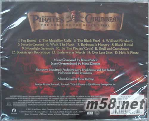 1 Fog Bound - 2:16 (Hollywood Studio Symphony) 2 The Medallion Calls - 1:52 (Hollywood Studio Symphony) 3 The Black Pearl - 2:16 (Hollywood Studio Symphony) 4 Will and Elizabeth - 2:08 (Hollywood Studio Symphony) 5 Swords Crossed - 3:15 (Hollywood Studio Symphony) 6 Walk the Plank - 1:58 (Hollywood Studio Symphony) 7 Barbossa Is Hungry - 4:06 (Hollywood Studio Symphony) 8 Blood Ritual - 3:32 (Hollywood Studio Symphony) 9 Moonlight Serenade - 2:08 (Hollywood Studio Symphony) 10 To the Pirates' Cave! - 3:30 (Hollywood Studio Symphony) 11 Skull and Crossbones - 3:23 (Hollywood Studio Symphony) 12 Bootstrap's Bootstraps - 2:38 (Hollywood Studio Symphony) 13 Underwater March - 4:12 (Hollywood Studio Symphony) 14 One Last Shot - 4:46 (Hollywood Studio Symphony) 15 He's a Pirate - 1:30 (Hollywood Studio Symphony)