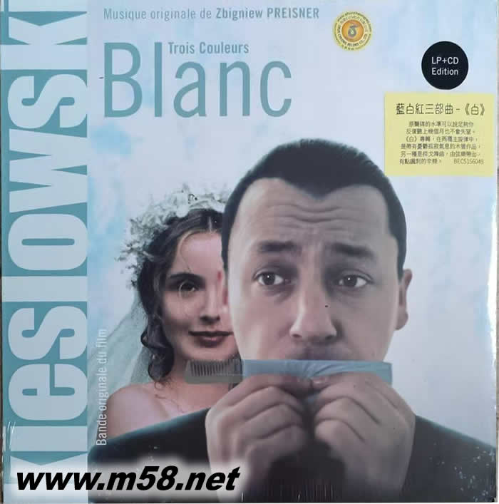 藍白紅三部曲 白 TROIS COULEURS BLANC Original Soundtrack Zbigniew Preisner 黑膠(m58.net) 第50屆威尼斯電影節最佳影片金獅獎,基斯洛夫斯基最經典電影的配樂,反復聽上幾個月也不會失望,以交響樂為主,聽來較為沉重,但普非沉悶,非常具有力度和張力。180克黑膠加CD