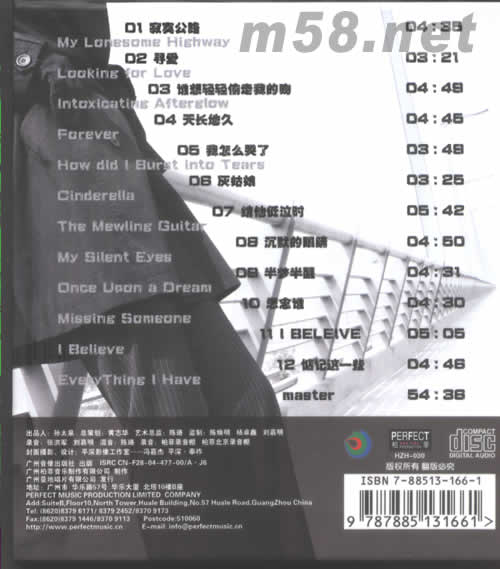 1、寂寞公路 2、尋愛 3、誰想輕松輕偷走我的吻 4、天長地久 5、我怎么哭了 6、灰姑娘 7、結他低泣時 8、沉默的眼睛 9、半夢半醒 10、思念誰 11、I BELEIVE 12、惦記這一些