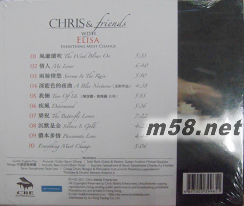 Everything Must Change陳潔靈與鮑比達(m58.net) Chris & Friends With Elisa Everything Must Change 殿堂級音樂大師鮑比達 巨星陳潔靈締造音樂新思維 集世界各地頂級著名樂手 打造本年度最震撼發燒大碟