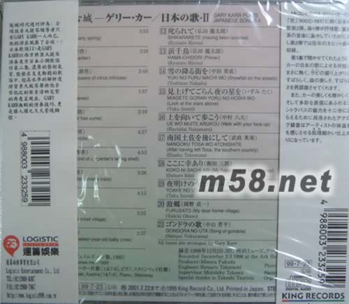 低音大提琴 日本歌謠2(日本版)(m58.net) 能被時代周刊評為:全球低音大提琴領導者只有GARY KARR一人而已。他的演出風磨了全球《日本歌謠II》是GARY KARR以西方樂器大提琴演奏東方日本小調歌謠作第二集,濃厚的藝術氣質,散發在支支聽聽的歌謠中,超高水準的解析度將背景凡風琴聲與低音琴低沉的弦音清晰完整的再度呈現出,GARY KARR無瑕的演奏技巧,更是讓人聞之久久縈繞胸懷。