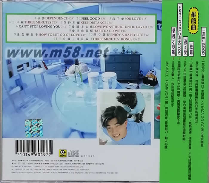 01. 依靠 DEPENDENCE 02. I FEEL GOOD 03. 為了愛 FOR LOVE 04. 三分鐘 THREE MINUTES 05. 保持距離 KEEP DISTANCE 06. CAN'T STOP LOVING YOU 07. 愛過才心痛 LOVE WON'T HURT UNTIL LOVED 08. 愛已成習(xí)慣 HABITUAL LOVE 09. 愛怎么放手 HOW TO LET GO OF LOVE 10. 開心就好 ENJOY A HAPPY LIFE 11. 三分鐘(遠(yuǎn)足版) THREE MINUTES(BONUS)