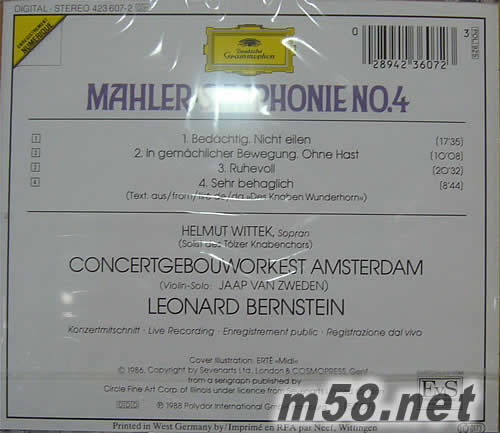 價格為估,以實到貨為準! 馬勒:第4交響曲 (指揮家 Leonard Bernstein)(m58.net)