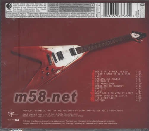 價格為估,以實到貨為準! Baptism(m58.net) 蘭尼.克拉維茨(Lenny Kravitz)這張新專輯的封面實在做得太誘人了——跪在比血液更紅的漿汁里,斜擺著一把造型超酷的Gibson吉它,即使觀者不知老兄究竟為何人,也很有可能會被這種“洗禮”的視覺化效果所吸引。 當然,真正讓蘭尼引進世人關注的還是他對樂器演奏一把抓的本領,在新專輯《Baptism》里同樣不例外,除了少量的弦樂和管樂點綴之外,你能夠在唱片里聽到的百分之九十以上的聲音就全是這位老兄一人“折騰”出來的。不過,他倒也不是一個沒事臭顯擺的人,并沒有將“全能”只是表現在形式上,無論是《Minister of Rock ’N Roll》里跳躍而賦有動感的蛙音貝司,還是《Lady》里恍若電刷聲的吉它掃弦,或是《California》里金屬動感十足的鼓擊,都證明他對各式樂器運用上的嫻熟和得心應手。