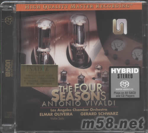 四季THE FOUR SEASONS 小提琴協奏曲 SACD(m58.net) 這個天樂的《維瓦爾第:四季》(Vivaldi: The Four Seasons)版本是迄今為止錄音最具現代美學風范的《四季》版本。 專輯所采用的錄音由著名的洛杉磯室內樂團演奏、Gerard Schwarz指揮,擔任小提琴獨奏的是當年柴可夫斯基小提琴國際比賽金獎獲得者Elmar Oliveira。 杰勒德?施瓦茨,美國指揮家,1947年8月19日出生于新澤西Weehawken,1972年畢業于朱利亞德音樂學院。1985年起擔任西雅圖交響樂團音樂總監。在他的指揮下,樂團錄制了許多唱片,并在1998年擁有了新的演出基地貝納羅亞音樂廳(Benaroya Hall)。他還在舊金山歌劇院、基洛夫歌劇院(Kirov Opera)、西雅圖歌劇院指揮過。 Gerard Schwarz指揮過許多知名樂團,如費城交響樂團、捷克愛樂樂團、倫敦交響樂團等,并曾獲得過哥倫比亞大學的Ditson Conductor's Award、朱利亞德音樂學院的榮譽博士等。1994年當選為《音樂美國》(Musical America)評選的年度指揮家。