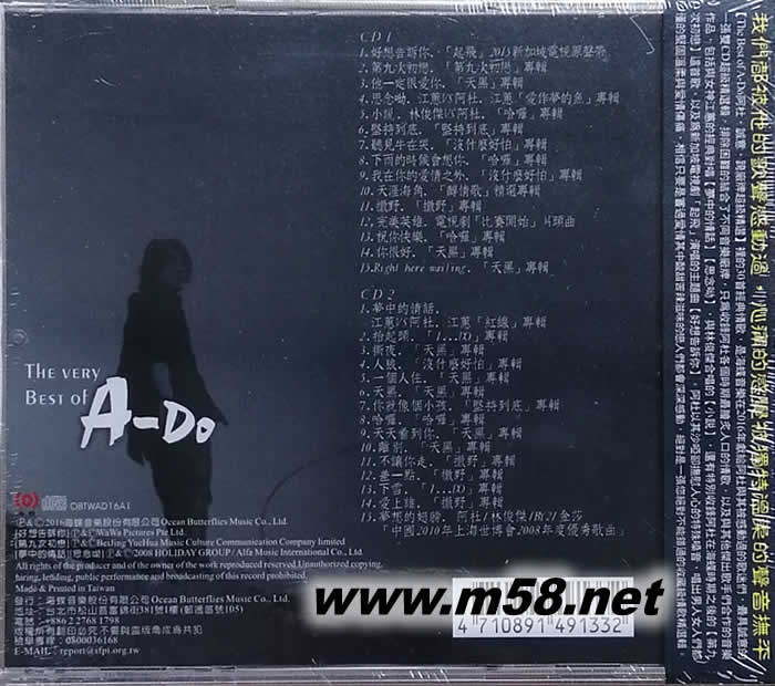 誠意 跨廠牌超級精選(m58.net) 0311出生的柔情沙啞雙魚男人。暖心感動的經典情歌 2016最具誠意為您呈獻動人至極挑選杜氏情歌 超級雙CD精選 收錄A-Do的30首最膾炙人口歌曲 我們都被他的歌聲感動過,心痛的感覺被獨特溫柔的聲音撫平‧ 【The Best of A-Do阿杜‧誠意‧跨廠牌超級精選】里的30首經典情歌,是海蝶音樂在2016年獻給阿杜與其被感動過的歌迷們,最具誠意的一張雙CD超級精選輯,排除困難的結合了不同音樂廠牌,只為收錄阿杜各個時期最膾炙人口的情歌,以及與其他杰出歌手們合作的音樂作品,包括與女神江蕙的經典對唱【夢中的情話】【思念呦】,與林俊杰合唱的【小說】,還有特別收錄阿杜在海蝶時期之后的【第九次初戀】這首歌,以及為新加坡電視劇「起飛」演唱的主題曲【好想告訴你】。阿杜以其沙啞卻撫慰人心的特殊嗓音,唱出男人女人們都懂的堅固溫柔與愛情傷痛,只要是嘗過愛情其中酸甜苦辣滋味的戀人們都會深深感動,絕對是一張您絕對不能錯過的收藏級情歌精選輯 。