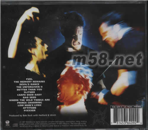 1.FUEL 2.THE MEMORY REMAINS 3.DEVIL'S DANCE 4.THE UNFORGIVEN II 5.BETTER THAN YOU 6.SLITHER 7.CARPE DIEM BABY 8.BAD SEED 9.WHERE THE WILD THINGS ARE 10.PRINCE CHARMING 11.LOW MAN'S LYRIC 12.ATTITUDE 13.FIXXXER