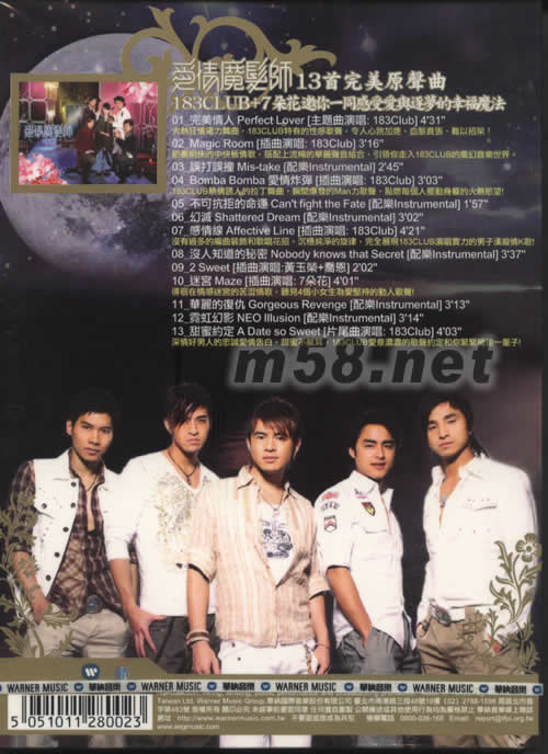 01. 完美情人 Perfect Lover[主題曲演唱:183Club] 02. Magic Room[插曲演唱:183Club] 03. 誤打誤撞 Mis-take[配樂Instrumental] 04. Bomba Bomba 愛情炸彈[插曲演唱:183Club] 05. 不可抗拒的命運 Can't fight the Fate[配樂Instrumental] 06. 幻滅 Shattered Dream[配樂Instrumental] 07. 感情線 Affective Line[插曲演唱:183Club] 08. 沒人知道的秘密 Nobody knows that Secret[配樂Instrumental] 09. 2 Sweet[插曲演唱:黃玉榮+喬恩] 10. 迷宮 Maze[插曲演唱:7朵花] 11. 華麗的復仇 Gorgeous Revenge[配樂Instrumental] 12. 霓虹幻影 NEO Illusion[配樂Instrumental] 13. 甜蜜約定 A Date so Sweet[片尾曲演唱:183Club]