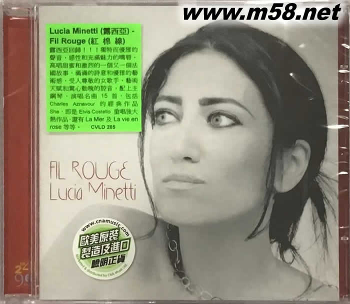 Fil Rouge (紅棉線)(m58.net) 露西亞回歸!??!獨特而優雅的聲音,感性和充滿魅力的嘴唇,高唱甜蜜和激烈的一個又一個故事,感覺置身在令人興奮的法國場景,滿滿的詩意和優雅的藝術感滿載當中,成就了這個受人尊敬的女歌手,她以優雅,藝術天賦和驚心動魄的腔音,配上主鋼琴,演唱名曲15首,包括Charles Aznavour的經典作品She,即是Elvis Costello 重唱后大熱作品,還有La Mer及La vie en rose等等。意大利發燒品牌Velut Luna如月天碟,發燒韻味。