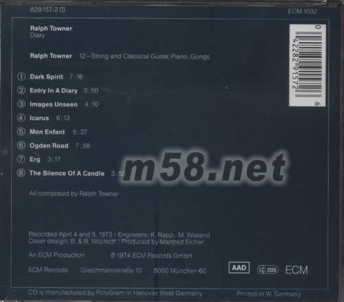1.DARK SPIRIT 2.ENTRY IN A DIARY 3.IMAGES UNSEEN 4.LCARUS 5.MON ENFANT 6.OGDEN ROAD 7.ERG 8.THE SILENCE OF A CANDLE