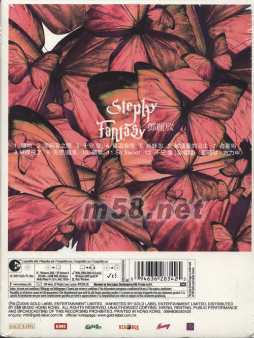 STEPHY FANTASY 鄧麗欣(m58.net) 產品尺寸:19*14.5*1.2CM 此產品現有兩個封面(參考大圖),內容一樣 請在訂單附言里注明所要封面顏色 特別收錄 電影“獨家試愛”主題曲 十分愛(合唱版)(鄧麗欣/方力申)