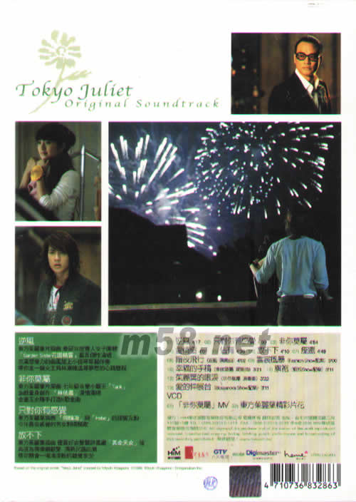 價格為估,以實到貨為準! 東方茱麗葉-電視原聲帶(m58.net) 今年夏天最浪漫的電視原聲帶~~ 飛輪海,Hebe,林依晨,張智成,龔詩嘉 共同打造一座時尚音樂饗宴! 特別收錄:林依晨繼孤單北半球后再次獻聲「非你莫屬」/飛輪海和Hebe甜蜜對唱「只對你有感覺」/飛輪海的深情告白「占有」/張智成展現實力唱功「愛情樹」「痊愈」/龔詩嘉唱出最具穿透力的情感「放不下」/華研雙人女子團體「Garden Sister花園精靈」個性演唱片頭曲「逆風」! 超值華麗加贈: Bonus VCD非你莫屬MV+東方茱麗葉精彩片段花絮+東方茱麗葉時尚書卡一組 原聲帶與戲劇最完美的結合!最華麗的陣容加最精致的制作! 華研一次給你最豪華的聽覺食宴 逆風-東方茱麗葉片頭曲/華研年度雙人女子團體「Garden Sister花園精靈」最具個性演唱。充滿想象力的曲風加上小提琴華麗伴奏,帶你走一趟女主角林瀨穗追尋夢想的心路歷程。 非你莫屬-東方茱麗葉片尾曲/七年級音樂小霸王「Tank」為戲量身創作「林依晨」深情演唱,金童玉女聯手打造K歌金曲。 只對你有感覺-東方茱麗葉插曲/「飛輪海」與「Hebe」的甜蜜互動。今年最有感覺的男女對唱情歌。 放不下-東方茱麗葉插曲/優質好女聲龔詩嘉繼「真命天女」后再度為偶像劇獻聲 清新民謠曲風,帶你體會一場清流般的聽覺享受。