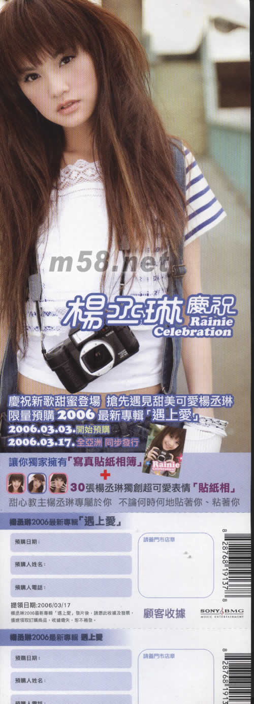 價格為估,以實到貨為準! 遇上愛 (臺灣限量預購版)(m58.net) 讓你獨家擁有[寫真大頭貼本] 30張楊丞琳獨創超可愛表情[大頭貼] 甜心教主楊丞琳專屬于你 不論何時何地貼著你\粘著你 慶祝新歌甜蜜登場 搶先遇見甜美口牙楊丞琳 限量預購2006最新專輯[遇上愛] 2006-3-3開始預購2006-3-17全亞洲同步發行