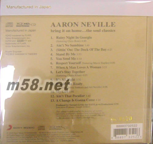 價格為估,以實到貨為準! BRING IT ON HOME THE SOUL CLASSICS K2HD(2017SONY 特價系列K2HD)(m58.net) AARON長相雖然似“黑鐵塔”般彪悍,但卻不相稱地擁有一把柔情無比的聲線。他那真假聲并用的唱腔美妙極了,吐字發音時的震顫式音調,仿佛裝上了彈簧,可以說,世上絕無第二把如此別具一格的嗓音。