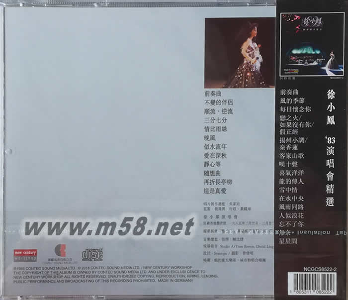 徐小鳳 85演唱會精選 首批德版(m58.net) 徐小鳳'85演唱會精選 CD 久別三十載 母帶重新調校處理 首批德國印制 *現場演繹。更為真摯*