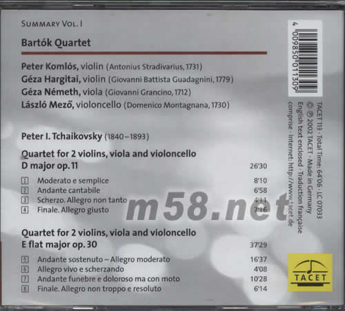 巴托克弦樂四重奏 SUMMARY VOL.1 PETER I TCHAIKOVSKY(m58.net)
