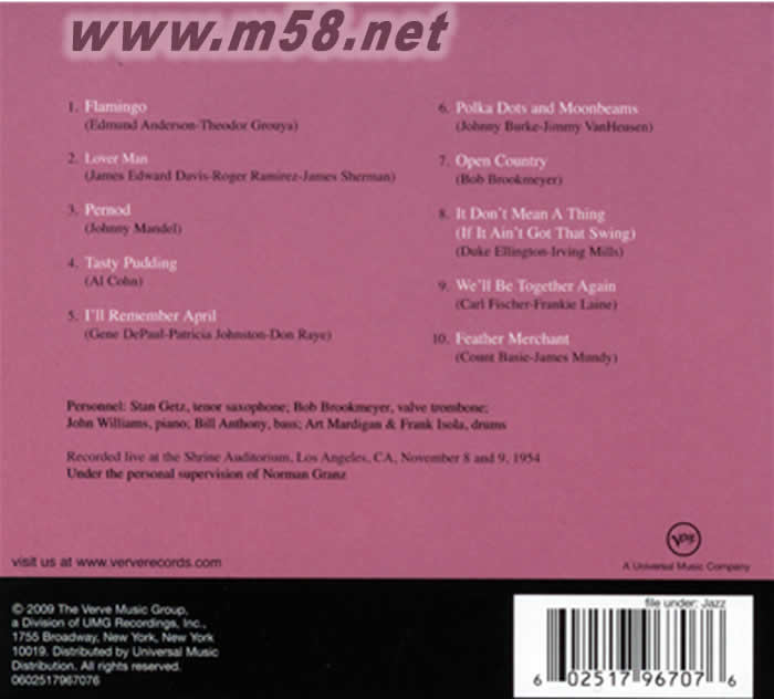 01 - Stan Getz - Flamingo 02 - Stan Getz - Lover Man 03 - Stan Getz - Pernod 04 - Stan Getz - Tasty Pudding 05 - Stan Getz - I'll Remember April 06 - Stan Getz - Polka Dots And Moonbeams 07 - Stan Getz - Open Country 08 - Stan Getz - It Don't Mean A Thing 09 - Stan Getz - We'll Be Together Again 10 - Stan Getz - Feather Mechant