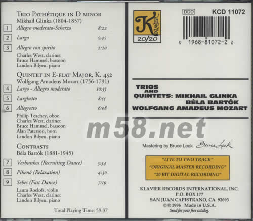 三重奏與五重奏 莫扎特&格林卡&巴托克專輯背面圖片