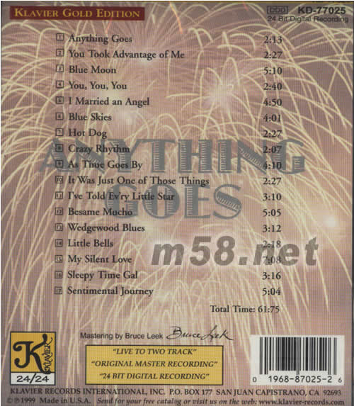 產品名稱:  ANYTHING GOES THE SAN SYLMAR THEATRE ORGAN   [24K金CD]