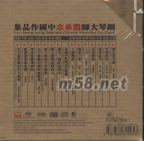 花月夜 鋼琴大師中國作品集SACD(m58.net) 1941年生于中國福建"音樂之鄉(xiāng)"廈門鼓浪嶼。七歲習(xí)琴,九歲登臺演出,十二歲以最高分的成績摘取了兩千多名考生中的狀元榜首,考入中央音樂學(xué)院華東分院附中(今上海音樂學(xué)院前身),師從馬恩蓀,入學(xué)兩個月后被蘇聯(lián)專家謝洛夫選入專家班。五十年代中至六十年代初,在蘇聯(lián)著名鋼琴家塔圖良、塔姬雅娜·彼得洛夫娜·克拉芙琴柯(列寧格勒音樂學(xué)院教授、俄羅斯人民藝術(shù)家)專家班學(xué)習(xí)。后赴列寧格勒音樂學(xué)院(今圣彼得堡音樂學(xué)院)留學(xué),繼續(xù)師從著名鋼琴教育家克拉芙琴柯,并修習(xí)作曲和指揮。其后以優(yōu)異的成績畢業(yè)于列寧格勒音樂學(xué)院和中央音樂學(xué)院。隨后任中央樂團首席鋼琴演奏家至八十年代。現(xiàn)定居美國紐約。 1959年至1962年,先后榮獲維也納第七屆世界青年聯(lián)歡節(jié)鋼琴比賽金獎和第二屆柴科夫斯基鋼琴比賽第二名。從此一舉盛名,并開始了職業(yè)的演奏生涯。多年來,與世界著名指揮大師奧曼迪、阿巴多、薩金特、康德拉申以及世界著名的費城交響樂團、維也納交響樂團、莫斯科交響樂團、圣彼得堡交響樂團、香港中樂團等有過非常成功的合作,出訪過俄羅斯、英國、日本、朝鮮、芬蘭、奧地利等國家地區(qū)。還與許多著名樂團合作,多次在全美舉行個人巡演,還經(jīng)常以獨奏家身份應(yīng)邀參加各種音樂節(jié)及慶典活動。2002年,擔(dān)任第四屆柴可夫斯基國際青少年音樂比賽評委主席。 1983年至今,先后三次在美國卡內(nèi)基音樂廳成功地舉行個人獨奏音樂會,還在倫敦維格莫音樂廳、莫斯科音樂學(xué)院音樂廳、圣彼得堡愛樂大廳等當(dāng)今世界著名的音樂圣殿,舉辦了音樂會。其熱情奔放、絢麗多彩、抒情優(yōu)美、嚴(yán)謹(jǐn)細(xì)膩兼?zhèn)涞难葑囡L(fēng)格和嫻熟的技巧,給人留下了極為深刻的印象。 對其出色的演奏,《紐約時報》、《華盛頓郵報》、《芝加哥論壇報》、《洛基山時報》、《波士頓全球報》、《倫敦音樂雜志》、《圣彼得堡日報》等世界報刊傳媒和專家給予了很高的評價:"殷承宗對西方古典音樂有敏銳而又自然的領(lǐng)悟,其張馳對比,準(zhǔn)確精當(dāng)、恰到好處……"、"殷先生對圓滑的連音和歌唱般的音色特別注意,實在很難聽到一位演奏家把鋼琴的音色表現(xiàn)得如此動人、如此富有感情"、"殷承宗是一位技巧令人眩目的、有力的鋼琴家……對鍵盤表現(xiàn)出有權(quán)威性的控制力。"、"他演奏貝多芬和李斯特作品,展示出超人的力度和速度,他可以跟其它一流的鋼琴家并駕齊驅(qū)"、"他是一位技巧一流而又感性的演奏家"、"曲風(fēng)極像阿勞,但他更細(xì)致、更敏感"、"阿勞表現(xiàn)出的是一位鋼琴大師所有的沈靜和洞察力,殷承宗展現(xiàn)的則是李斯特的火力,他有著超越尋常的速度,凝聚的律動和難以抵擋的推動力"、"殷承宗是一位詩人、哲學(xué)家型的藝術(shù)家。"1993年9月,應(yīng)邀回國參加中央電視臺臺慶35周年演出活動,反響熱烈。1996年9月,在南京舉辦鋼琴音樂會,創(chuàng)下了南京音樂舞臺演出上座率的最高記錄。 歷年來,創(chuàng)作和改編了許多中國鋼琴精品。1968年,創(chuàng)編了鋼琴伴唱《紅燈記》,于同年首演。1970年,作為主創(chuàng)者,與幾位音樂家合作創(chuàng)編了鋼琴協(xié)奏曲《黃河》,同年在北京首演,并擔(dān)任鋼琴獨奏,隨后灌錄了唱片(此版鋼琴《黃河》獲1995年中國金唱片獎)。鋼琴協(xié)奏曲《黃河》在國際樂壇享有盛譽,并成為各國音樂家常演的中國音樂的經(jīng)典作品。其演奏的《黃河》,已由德國西曼唱片公司灌制成CD唱片,發(fā)行量居高不下。1995年,又與俄羅斯圣彼得堡愛樂樂團合作,重新錄制了最新影碟鋼琴協(xié)奏曲《黃河》。此外,還改編了《春江花月夜》、《十面埋伏》等一批極具中國神韻的古曲,為探索鋼琴演奏民族化傾注了畢生心血,被認(rèn)為是鋼琴演奏民族化的先驅(qū),"洋為中用"的杰出典范。 1997年,香港馬可波羅唱片公司出版發(fā)行的"殷承宗與鋼琴島"電視片在全美播放,引起轟動。1997慶香港回歸期間,先后在美國紐約林肯中心、達(dá)拉斯、舊金山、香港以及中國江蘇、江西等地參加了慶回歸演出活動,反響熱烈。此外,中國中央電視臺還特邀其在天安門廣場演奏鋼琴協(xié)奏曲《黃河》,并在7月1日向全世界播放,影響深遠(yuǎn)。 1997年9月,與俄羅斯圣彼得堡國家交響樂團合作在北京、上海、南京、石家莊、武漢、長沙、廈門等城市舉辦大型鋼琴交響樂音樂會。 2000年,時逢其從事鋼琴演奏藝術(shù)50周年,為此,由波士頓開始,在美國、中國、俄羅斯主要城市舉行了數(shù)十場個人巡演,最后在美國卡內(nèi)基音樂廳圓滿結(jié)束了這次橫跨歐亞美的演出活動。 鑒于其鋼琴演奏藝術(shù)成就卓著,因此獲得了世人的高度贊譽。殷承宗是"中國首席鋼琴巨匠"、"中國最杰出的鋼琴家"、"是一位世界級的演奏家。"作為中國四大音樂家之一,其藝術(shù)傳略已被載入了英國新格羅夫大辭典。