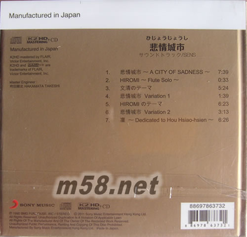 悲情城市(SONY K2HD系列專輯背面圖片