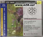 貝多芬:D大調(diào)小提琴協(xié)奏曲,降E大調(diào)弦樂三重奏 Beethoven : Violin Concerto op.61 ; String Trio op.3 (SACD)(m58.net) 重現(xiàn)歷久不衰的傳奇經(jīng)典 真空管錄音史上的稀世珍品 凌駕發(fā)燒樂界的超級天碟 貝多芬誕生250週年紀念,TACET高品質(zhì)錄音 2CD超值享受,85分鐘聆聽樂趣 2020年為貝多芬誕生250週年紀念,TACET旗下最知名小提琴家丹尼爾蓋德領軍帶來《降E大調(diào)弦樂三重奏》與貝多芬最著名小提琴協(xié)奏曲《D大調(diào)小提琴協(xié)奏曲》,弦樂三重奏由小提琴家丹尼爾蓋德(Daniel Gaede)、中提琴家(Thomas Selditz)、大提琴家(Sebastian Gaede)合奏,三位成員可以說都身懷絕技,展現(xiàn)絕佳默契的精彩演繹。 小提琴協(xié)奏曲與Wojciech Rajski指揮波蘭室內(nèi)愛樂管絃樂團合作,丹尼爾蓋德對獨奏作品的詮釋很棒,他的器樂技術很高超,語氣豐富,與管弦樂隊之間的對話相當精彩,完美融合有如室內(nèi)樂。波蘭室內(nèi)愛樂管絃樂團演奏出許多復雜的細節(jié),樂團的弦、木管、和銅管樂器都很出色。 SACD版本運用TACET獨家的Real Surround Sound實境環(huán)繞錄音,先進的錄音技術和平衡感,坐在家里聆聽音樂的感覺就像坐在音樂廳一樣。這不僅適用於弦樂三重奏的室內(nèi)樂,管絃樂團的演奏也讓您身臨其境。