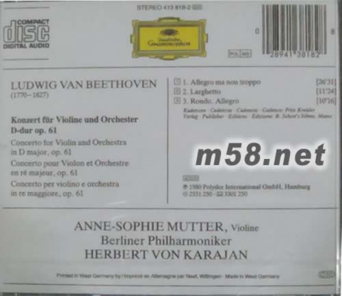 貝多芬小提琴協(xié)奏曲 穆特與卡拉揚專輯背面圖片
