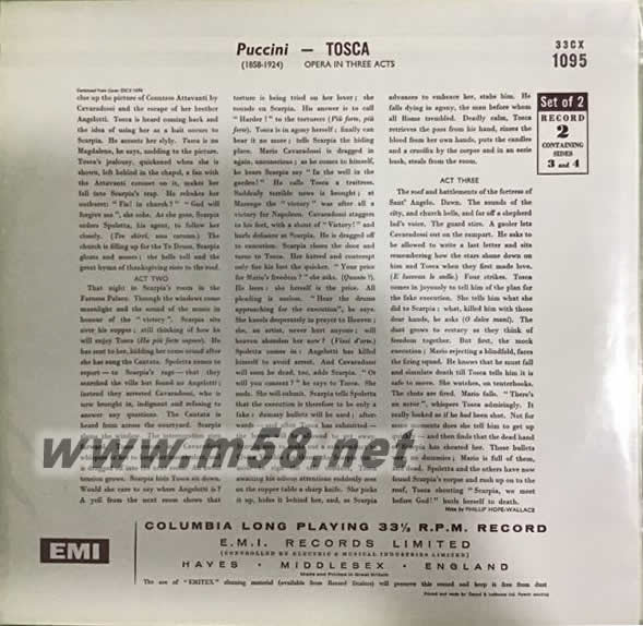 Puccini: Tosca 180g 33RPM LP黑膠專輯背面圖片
