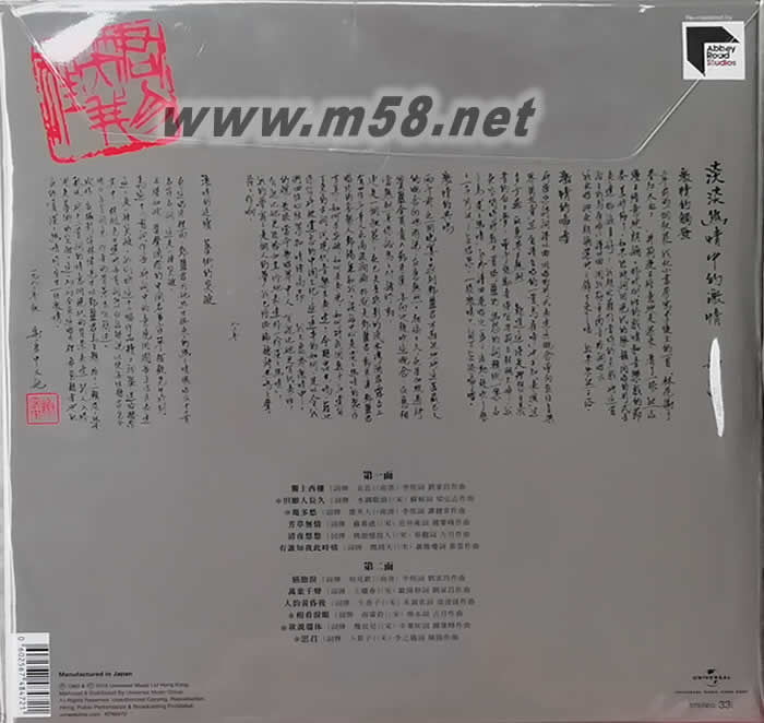 極致黑膠版本2018再續(xù)經(jīng)典 「披頭四」用國(guó)際級(jí)頂級(jí)錄音室ABBEY ROAD STUDIOS呈獻(xiàn) 頂尖混音師Sean Magee傾力炮製.模擬原母帶取樣 180Grams.33 1/3 Stereo.Made In Japan 內(nèi)附11.5x11.5吋28頁(yè)彩色印刷歌詞/作品導(dǎo)賞(附「意譯」/「解說(shuō)」)寫真畫冊(cè) ARS LP鄧麗君–淡淡幽情(Re-mastered by ARS)