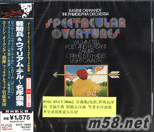 序曲包括:羅西尼序曲 蘇佩序曲 輕騎兵序曲 等著名序曲集 奧曼迪指揮愛樂樂團 演奏費城樂團