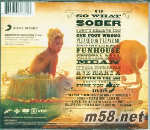 CD: 1. So What 2. Sober 3. I Don't Believe You 4. One Foot Wrong 5. Please Don't Leave Me 6. Bad Influence 7. Funhouse 8. Crystal Ball 9. Mean 10. It's All Your Fault 11. Ave Mary A 12. Glitter In The Air 13. This Is How It Goes Down - featuring Travis McCoy - Bonus Recording 14. Push Me Away - Bonus Recording Bonus DVD Music Videos 1. So What 2. Funhouse 3. Sober 4. Please Don't Leave Me Live In Australia 5. I Don't Believe You 6. Please Don't Leave Me 7. So What