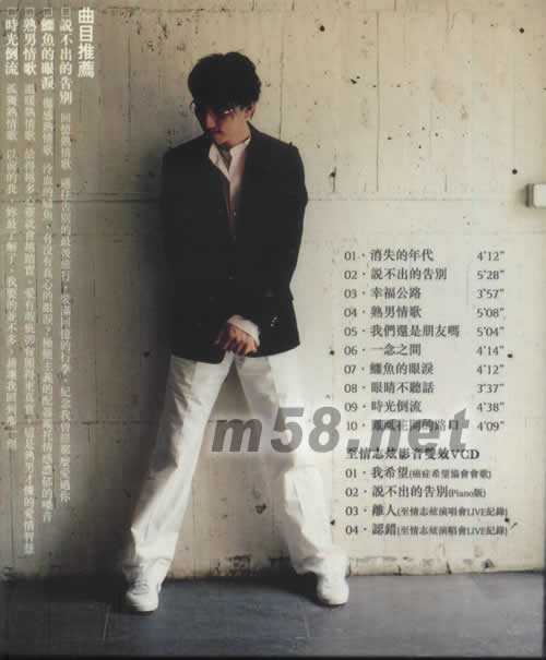 CD 01. 消失的年代 02. 說不出的告別 03. 幸福公路 04. 熟男情歌 05. 我們還是朋友嗎 06. 一念之間 07. 鱷魚的眼淚 08. 眼睛不聽話 09. 時光倒流 10. 鳳凰花開的路口 VCD - 至情志炫影音雙效VCD 01. 我希望 (癌癥希望協會會歌) 02. 說不出的告別 (Piano版) 03. 離人 (至情志炫演唱會Live紀錄) 04. 認錯 (至情志炫演唱會Live紀錄)