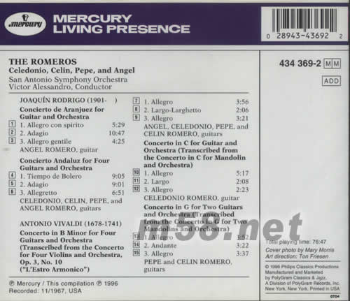 RODRIGO VIVALDI GUITAR CONCERTOS THE ROMEROS專輯背面圖片