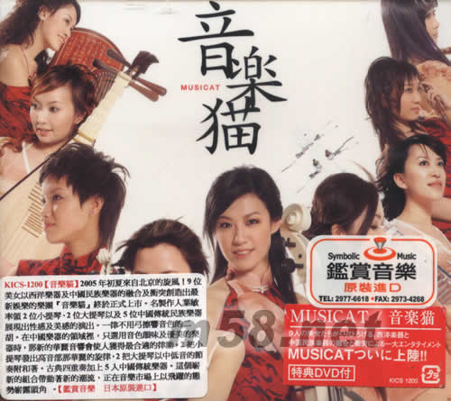 價格為估,以實到貨為準! 音樂貓(m58.net) 2005年初夏來自北京的旋風!9位美女以西洋樂器及中國民族樂器的融合及衡突創造出最新娛樂的樂團[音樂貓]終于正式上市.名制作人葉敏率領2位小提琴、2位大提琴以及5位中國傳統民族樂器展現出性感及美感的演出。一律不用弓擦聲音色的二胡。在中國樂器的領域里,只選用音色韻味及優美的樂器時,那新的華麗音聲會使人獲得最合適的律動。2把小提琴發出高音部那華麗的旋律,2把大提琴以中低音我節奏附和著。古曲四重奏加上5人中國傳統樂器。這個嶄新的組合帶動著新的潮流,正音樂市場子上以飛躍的態勢嶄露頭角。